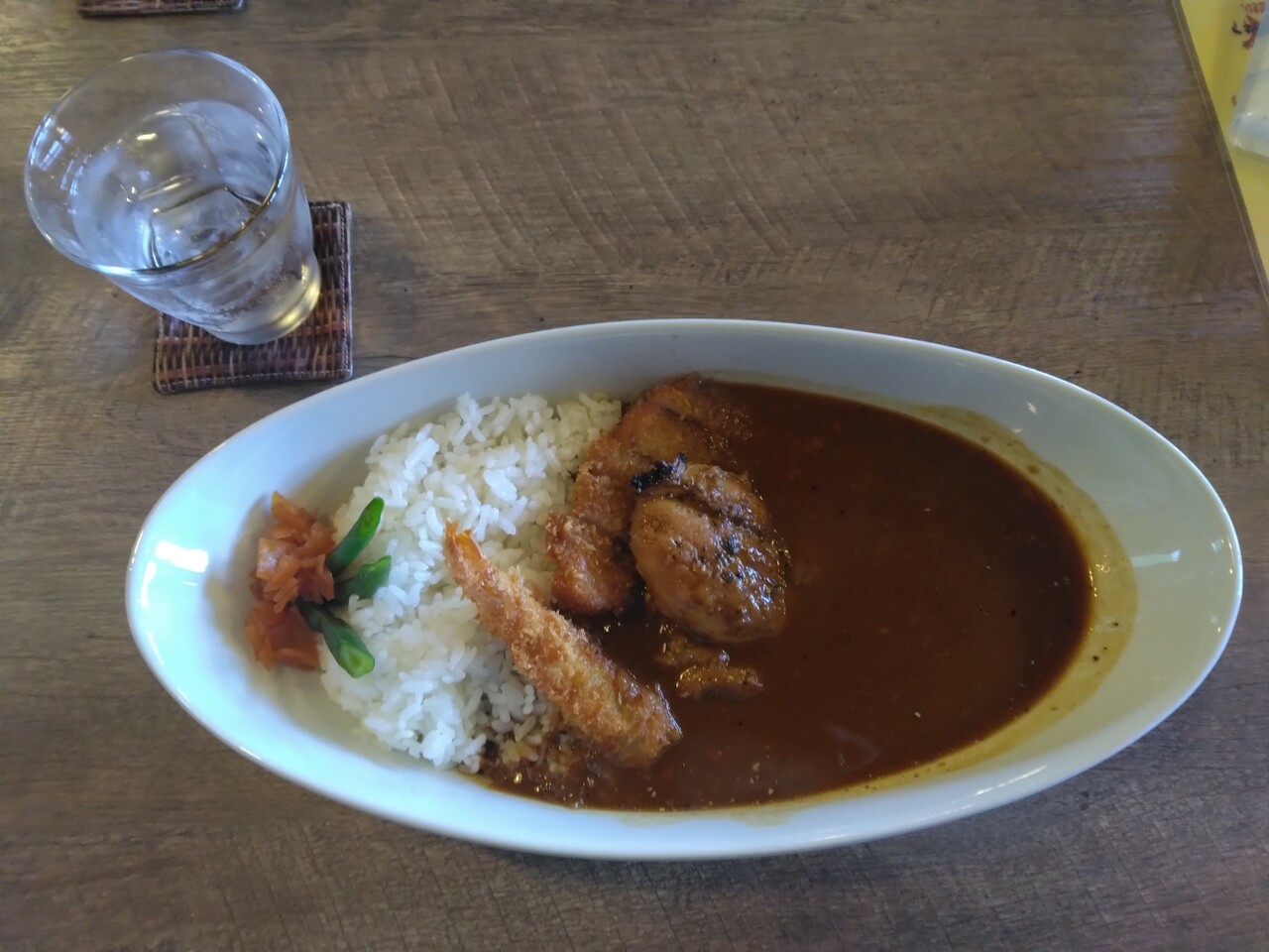 グルーディーカレー(チキン・ヒレ・エビフライ3種盛り)大盛